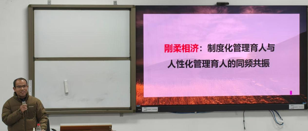 本次讲座以“破解学生管理实践偏差,实现刚柔协同育人”为核心导向,通过理论阐释、案例分析、制度解读等形式,系统解构制度化与人性化管理的育人机理,并明确二者同频共振的实践路径,为在场师生提供兼具理论高度与实操价值的管理育人思路。