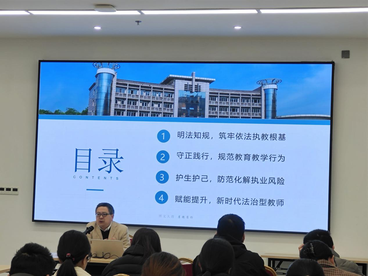 谢腾欧老师的讲座立足中小学教育教学实际,结合自身多年教学与研究经验,紧扣“法治护航教育 规范赋能成长”核心主题,重点解读了如何规范教育教学行为,防范和化解常见教师执业风险。